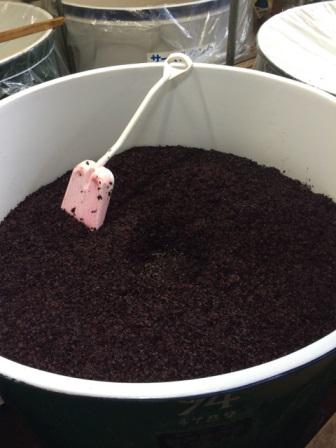 スコップでバケツに入れて、バケツリレーでプレスに入れます。けっこうな重労働(^^;)