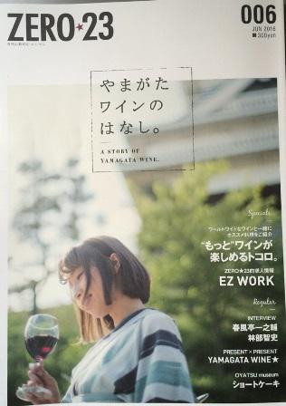 山形の情報誌「ZERO☆23」の6月号が山形県のワイン特集です。各ワイナリーのおすすめワイン情報や、山形のワインの特徴、山形のワインが飲める飲食店の紹介、来月かみのやま温泉で開催のワインバルの情報など内容盛りだくさんです。