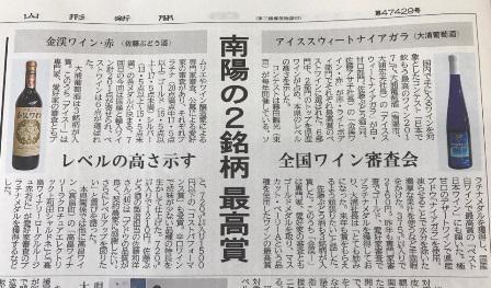 本日の山形新聞に、『日本で飲もう最高のワイン2017』が紹介されアイススウィートナイアガラの二年連続最高賞受賞の記事がありました。記事を読んだお客様から今日は、たくさん問い合わせやお祝いのお電話を頂戴しました。ありがとうございます。