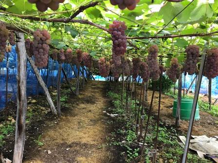 マスカット・ベリーAは9月末頃から収穫が始まります。開花後の花ぶるいが多い農家さんもいましたが、まずまず順調な進み具合です。