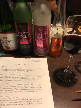 昨夜は酔太朗さん(同級生の飲食店)と結城酒店さん共同企画の『日本のワインを楽しむ夕べ』にて、うちのワインだけでのワイン会。8銘柄のワインを準備し、それに合う料理を酔太朗のマスターに作って頂きました。20名のお客さんに説明しながら飲み、あっという間の楽しい3時間でした(^^)