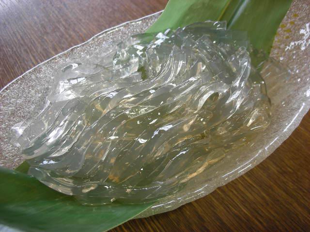 昔は夏のデザートの定番だったところてん。本当にところてんが好きだったという人に食べて欲しいと、昔ながらの製法で丁寧に作りました。シーズンになりますと、店内のカフェスペースで、つきたてのところてんが食べられます。味付けは控えめ、清涼感のあるつるつるとした喉ごしをどうぞご堪能ください。