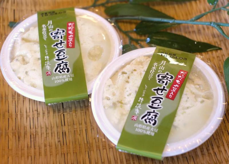山形県鶴岡市で有名な だだちゃ豆(枝豆) が入った〈だだちゃ豆入りよせ豆腐〉 です!だだちゃ豆(枝豆) のふんだんな香りが楽しめる山形県産大豆100%の豆腐。これからの季節にオススメです!