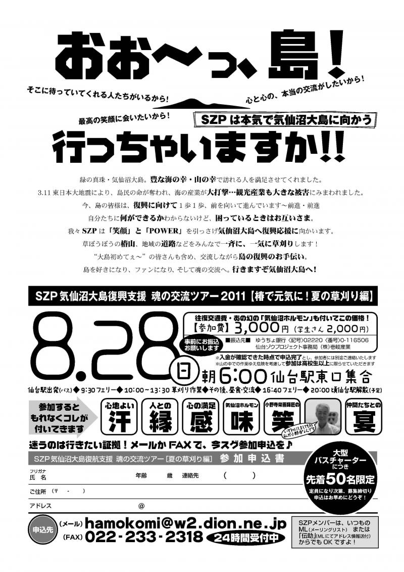 ▼SZP気仙沼大島復興支援 魂の交流ツアー[夏の草刈り編]