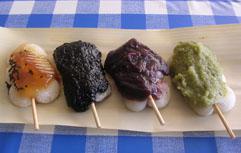 だんごというより柔らかな小さな餅が串に刺さっている感じです。餡は4種、ゴマ、あんこ、じんだん、しょうゆ。いずれも、甘さを控えた素朴な味わいです。注文してから、おばあちゃんが、一本一本丁寧に餡をつけてくれます。