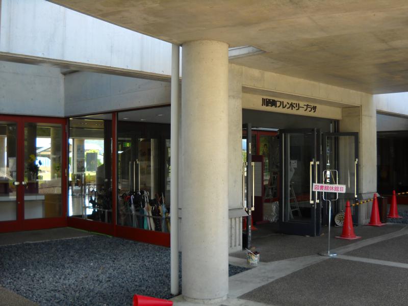 休館日に合わせ正面玄関の塗装工事を行っております。