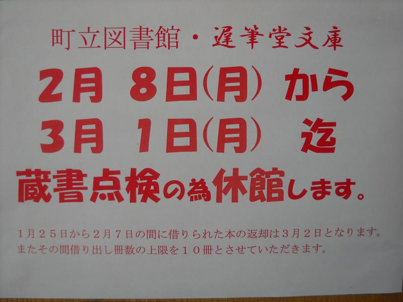 蔵書点検等の作業のため、2月8日月曜日から3月1日月曜日まで
