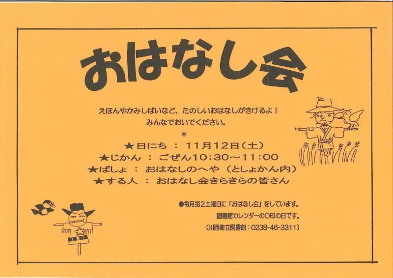 11月のおはなし会は11月12日(土)10時30分からです。少しでも興味がある方はどうぞお気軽にお立ち寄りください。