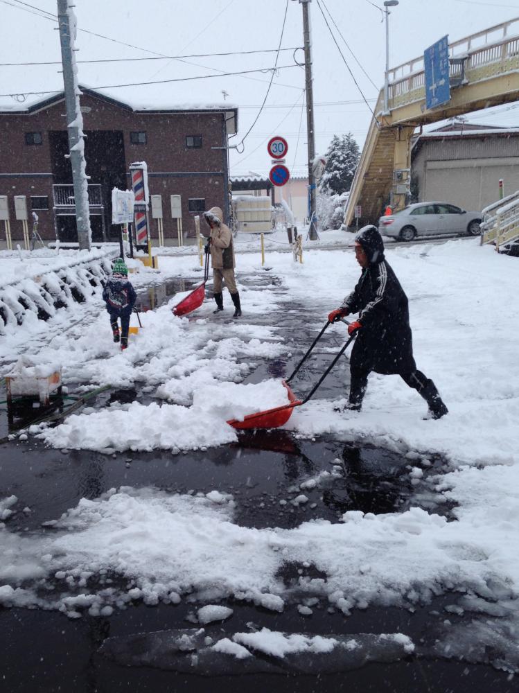 やっぱり心配しなくてもちゃんと降りますね。待ってました!と小関床屋三世代がせっせと朝仕事…ちっこいのも頑張ります!
