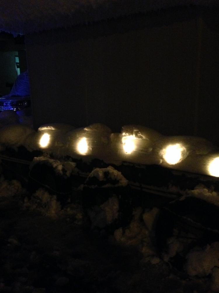 ここ数日の雪の量には毎朝驚き、小関除雪隊も頑張っております。そこでミニ雪灯籠をチビすけと若旦那が作りました。ちょっぴりロマンチックな小関床屋です。
