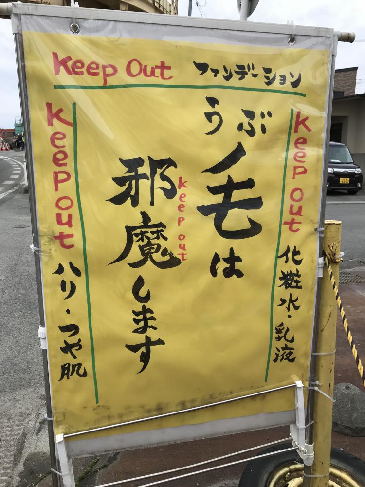 雪が降るまでの期間限定看板です。産毛はいろんな邪魔をしているんですよ。今年の産毛は、今年のうちに綺麗に取り除きましょう。セルフケアでは味わえない気持ち良さです。お待ちしてます。