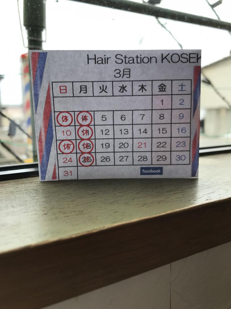 ▼3月ヒイィィィ!!!!(゚ロ゚ノ)ノ早いっ!!!定休日 ナウなカット グットなパーマ 顔そりでつるぷる肌 ヘア ステーション コセキ