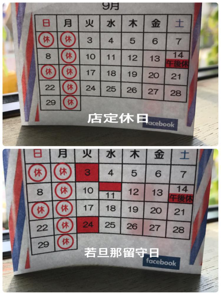 9月も地区のお祭りなどあり、変則的な休みもございます。ご確認をよろしくお願いします
