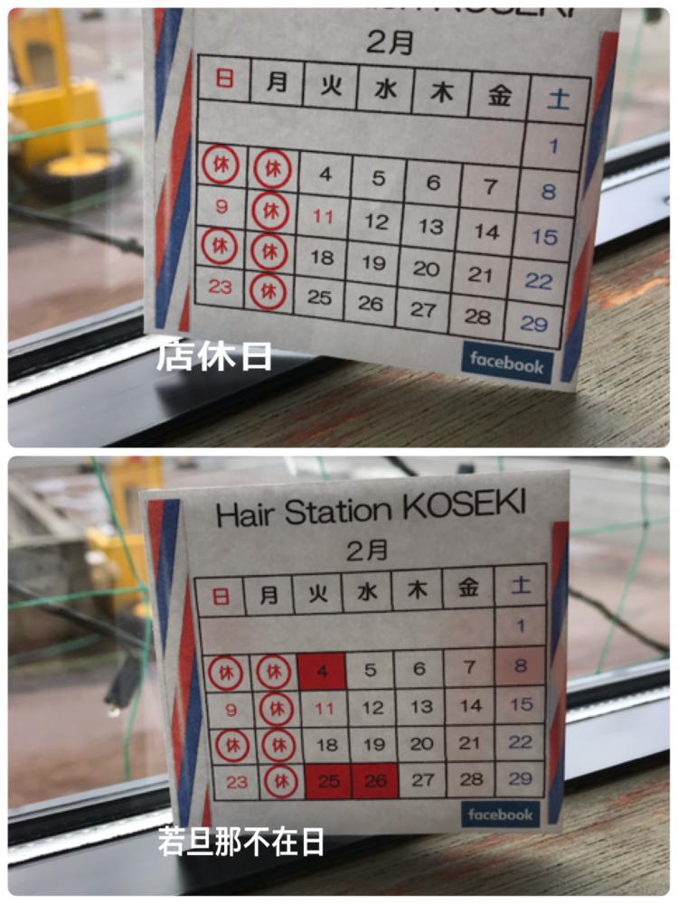 ▼2月の定休日 ナウなカット グットなパーマ お顔そりでつるぷる肌 ヘアステーション コセキ