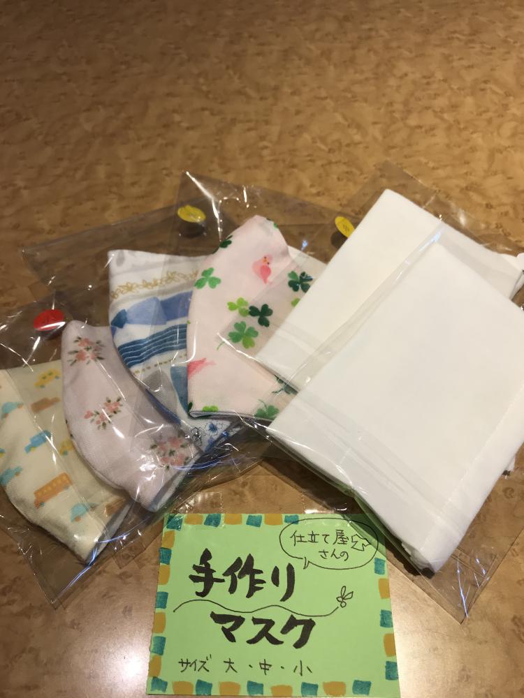 洋服の仕立て屋をしているお客様か作った「手作りマスク」子供用 女性用 男性用当店でも販売いたしています興味のある方はお気軽どうぞ