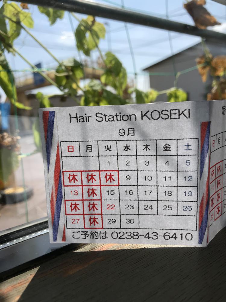 ▼9月の定休日のお知らせ ナウなカット グッドなパーマ 顔剃りでお肌つるぷる 温活 バザルトホットストーン