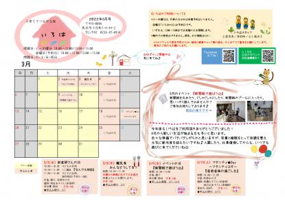 いろは(長井市子育て支援センター)おたより3月:特定非営利活動法人 やまがた育児サークルランド