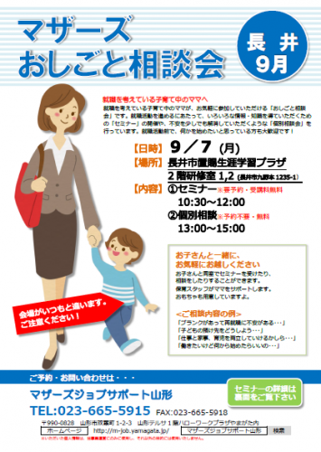 ▼マザーズおしごと相談会in長井 9月開催のご案内