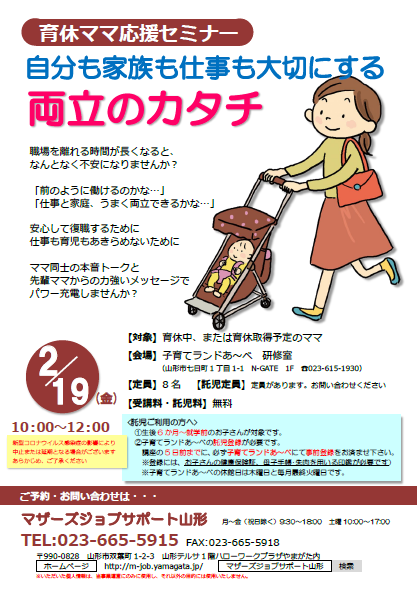 ▼2月『育休ママ応援セミナー 両立のカタチ』【2/6追記アリ】