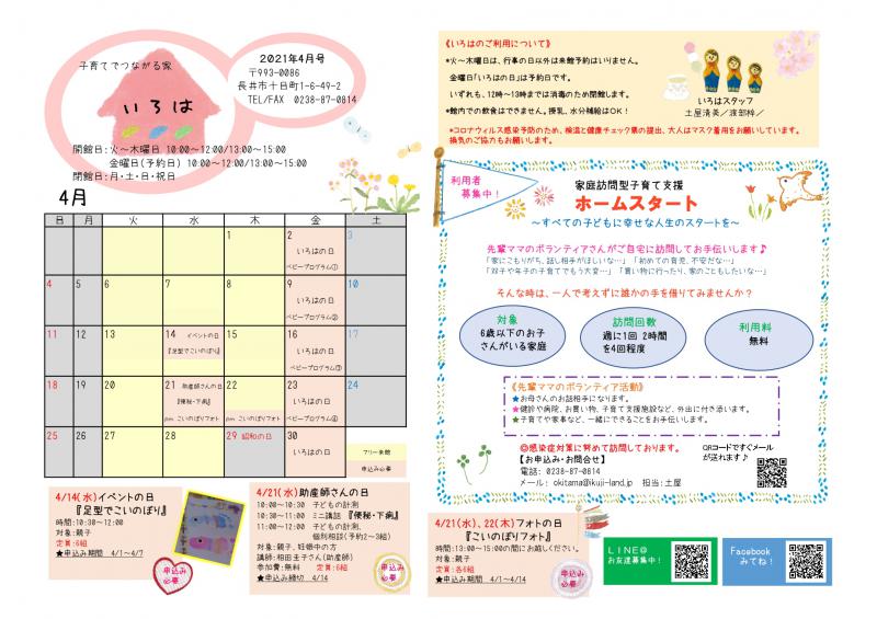 ▼いろは(長井市子育て支援センター)おたより4月