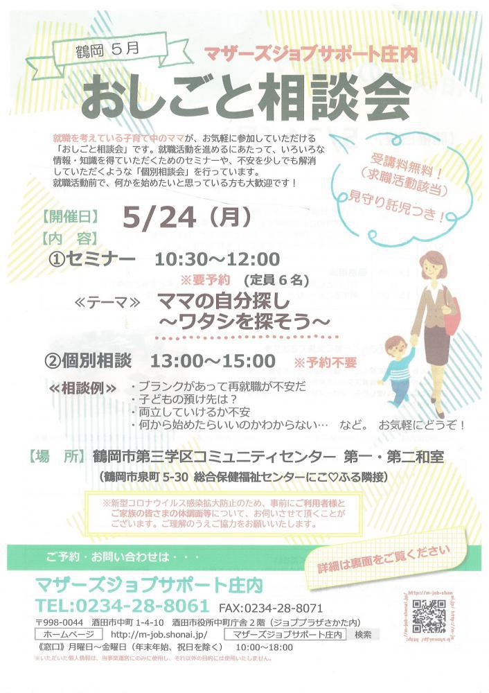 ▼5月 マザーズおしごと相談会in鶴岡 開催のお知らせ