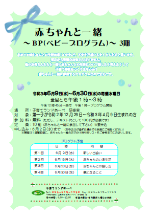 初めての赤ちゃんとの生活は楽しいけれど、不安や戸惑いもたくさんあると思います。他のママ達と一緒に赤ちゃんとの生活について話したり考えたりして、子育て仲間を作りませんか? 日時:6月9日(水)〜6月30日(水)の毎週水曜日 全回とも13:00〜15:00場所:子育てランドあ〜べ 研修室対象:第一子が令和2年12月26日〜令和3年4月9日生まれの方参加料:無料 ただし、テキスト代として1,000円が必要です 初めて子育てをしているママ同士でお話しできる良い機会です。手指消毒や検温、健康チェック、換気等を行いながら開催します。皆さんのご参加をお待ちしています♪ お申込・お問い合わせは 子育てランドあ〜べ TEL:023-615-1930