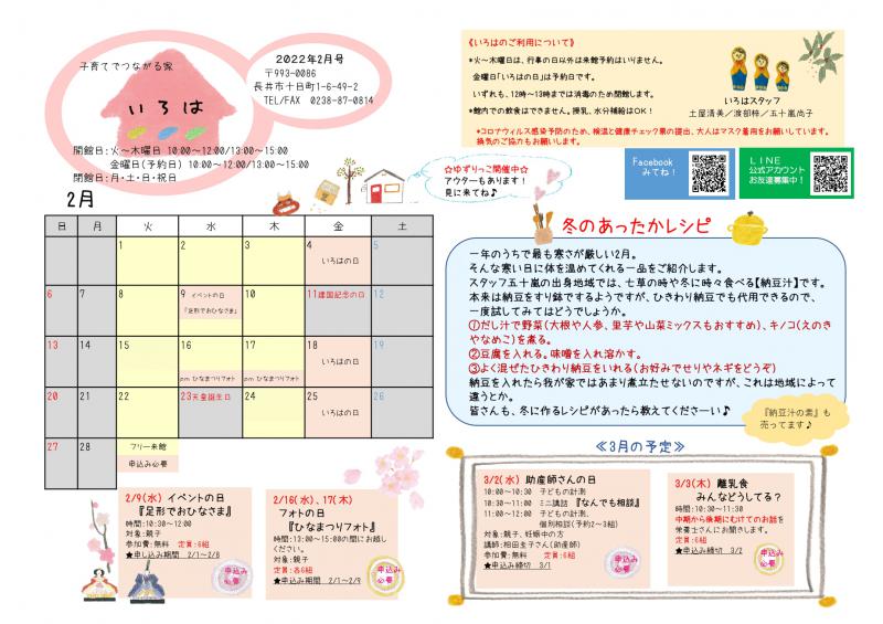 ▼いろは(長井市子育て支援センター)おたより2月