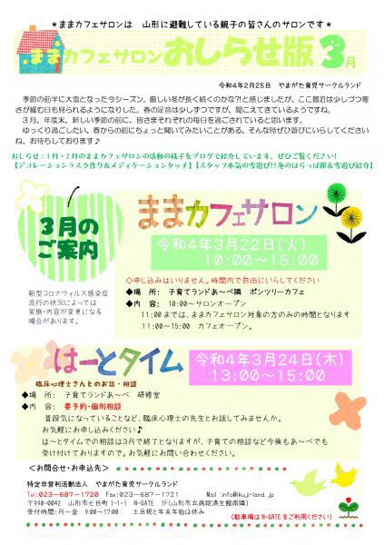 ▼ままカフェサロン・はーとタイム3月のお知らせ