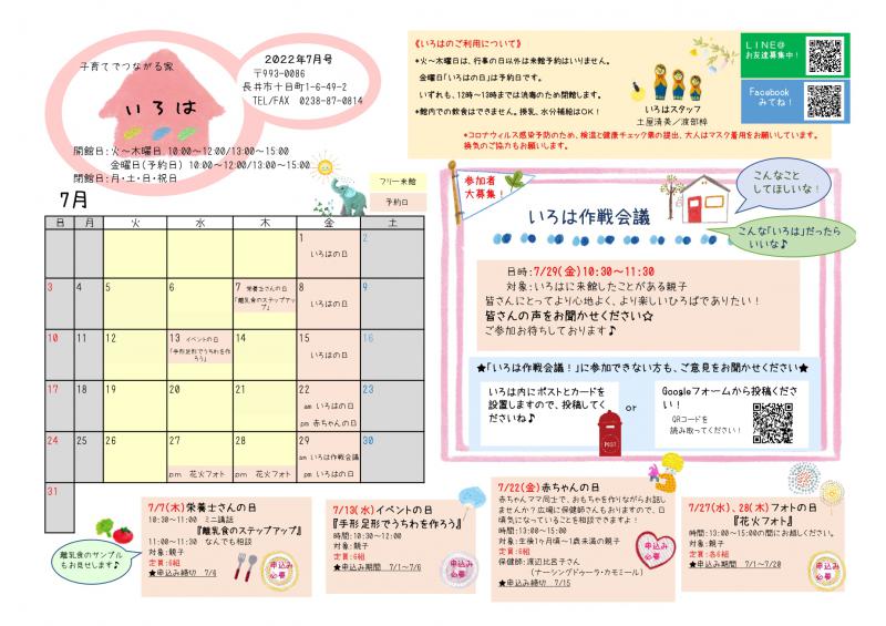▼いろは(長井市子育て支援センター)おたより7月