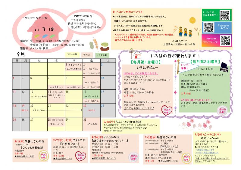 ▼いろは(長井市子育て支援センター)おたより9月