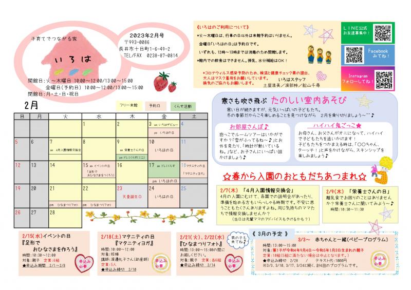 ▼いろは(長井市子育て支援センター)おたより2月