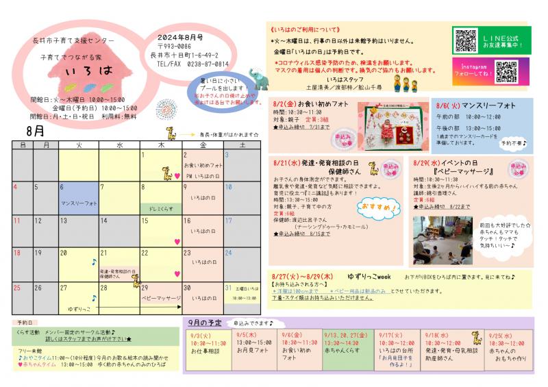 ▼いろは(長井市子育て支援センター)おたより8月