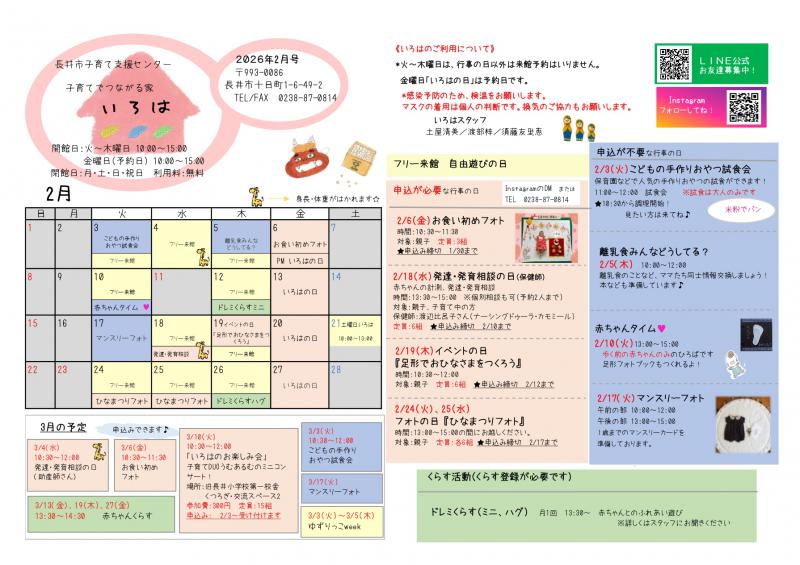 ▼いろは(長井市子育て支援センター)おたより2月