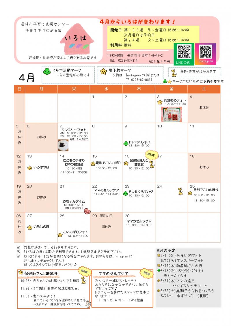 ▼いろは(長井市子育て支援センター)おたより4月