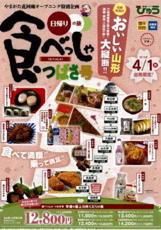 やまがた花回廊2012キャンペーンオープニング特別企画として、福島駅から新庄駅まで、食べっしゃつばさ号が運行されました。