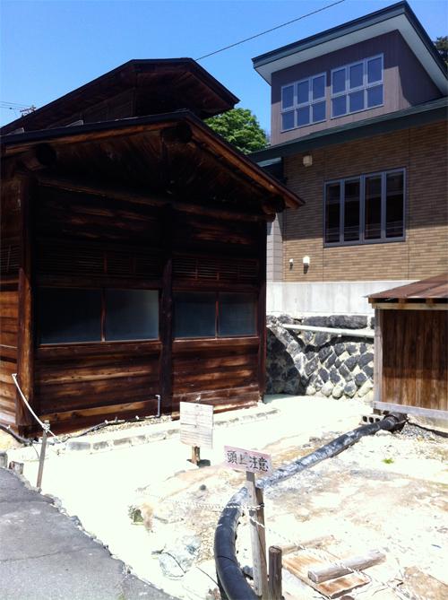 こちらは蔵王温泉共同浴場のひとつ「川原湯共同浴場」の裏手にある湯だまりです。