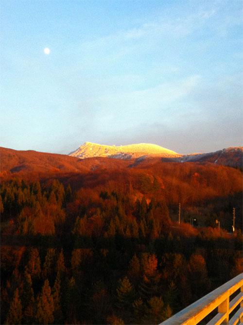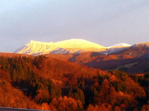 ▼夕焼けに染まる初冬の蔵王