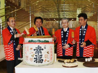 新年明けましておめでとうございます!▼本日朝8時頃の初“朝日”♪少し曇っていたのでほわ〜っとしてました(*^-^*)2013年・巳年!今年も皆様にとって良い年でありますように…(*^人^*)これからもながいファン倶楽部では“旬”な情報をお伝えしていきます!よろしくお願いします!(*^O゚)ノ今日は1月1日、元日です!長井市タスでは今日から『2011年TAS元旦祭』が行われています♪本日朝10時から1Fロビーで鏡開きを皮きりに、1F展示ホールで初釜茶席、2F屋台コーナーが設けられました!▼初釜茶席▼可愛らしい和菓子もどうぞ(*^-^)っお餅のふるまいは11時からなのですが、10分前には…!▼列が!▼後ろから(^O^;)▼始まると、一気に!10分ほどで完売♪ありがとうございました。▼屋台コーナーワンコインカレーも人気♪12時からは恒例、高玉芝居新春公演も開かれ、たくさんの方にお越しいただきました!▼芝居が終わると“わー!”っとお花があがっていました(@@)タス物産館では初売りが行われており、またお買上げ金額に応じて干支和菓子をプレゼントしています☆※この期間にながいファン倶楽部にご入会いただいた方にはプレゼントや割引のご用意をしております!!明日1月2日は10時から新春書初め大会が2Fコンベンションホールで行われます。*゜?。+*?*゜?。+*?*゜?。+*?*゜?。+*?*゜?。+*?*゜?☆山形おきたま 冬のあった回廊☆*゜?。+*?*゜?。+*?*゜?。+*?*゜?。+*?*゜?。+*?*゜?*゜?。+*?*゜?。+*?*゜?。+*?*゜?。+*?*゜?。+*?*゜?毎月1日・15日にファン倶楽部会員様へメールマガジンを配信中♪▼お申込はこちらから!▼twitter▼お買物はここ!ネットショップやまがたタス物産館※会員登録してからお買い物するとオトク♪ポイントが貯まります!