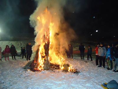 小正月に行われる地区行事としてヤハハエロが各地で行われました。「ヤハハイロ」「斎塔焼」「どんど焼き」とも呼ばれている伝統行事。藁や炭俵で円錐形に作られた斎塔に火をつけ、正月に飾られた松、歳徳神、古いお札などを燃やして無病息災・豊作を願う火祭りです。昼間に地域の小学生が地区内の家を1件1件まわり、お札を集めます(^▽^)その間、大人たちが斎塔を準備します。そして夜になり地区の人たちが集まると、斎塔に火がつけられます!▼たくさんの方が集まってきました!▼点火の瞬間(*゚O゚)ρ火が燃え盛ってくると「ヤーハハエロー」と声を張り上げます!長井市史では「ヤーハハイロー、センキセンバコ、フットンデゲー」と書いてありました(@@!)※身体についていたいろいろな病気が火と一緒に吹っ飛んで行けという意味だそうです。この他、いろいろな掛け声?が地区ごとにあるらしく、覚えているのは…「ヤハハエロー目メクソ鼻クソ飛んでいけー」という掛け声です!小さい頃はなんで?と不思議に思っていたのですが、病気を吹っ飛ばすという意味を聞いて納得(*^-^)b 皆さんのところの掛け声はどういうものがありますか?1月も後半に突入!早いですね〜。インフルエンザも流行ってきてるようなので、手洗いうがい忘れないでくださいね♪*゜?。+*?*゜?。+*?*゜?。+*?*゜?。+*?*゜?。+*?*゜?☆山形おきたま 冬のあった回廊☆*゜?。+*?*゜?。+*?*゜?。+*?*゜?。+*?*゜?。+*?*゜?*゜?。+*?*゜?。+*?*゜?。+*?*゜?。+*?*゜?。+*?*゜?毎月1日・15日にファン倶楽部会員様へメールマガジンを配信中♪▼お申込はこちらから!▼今が“旬” 〜啓翁桜(けいおうざくら)〜お求めは、ネットショップやまがたタス物産館で!※会員登録してからお買い物するとオトク♪ポイントが貯まります!