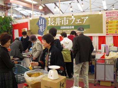 3月9日〜11日までの3日間、東京都大田区のダイシン百貨店にお邪魔し、山形、長井の特産品・商品のPRと販売を行いました(*^-^*)▼ダイシン百貨店1日目、山形の朝は吹雪いていたのですが…東京はとっても良い天気!▼店頭特設会場にて開催通りからは、玉こんの香りでお迎えです♪▼恒例の玉こん煮。するめも入れて、おいしくな〜れ♪車でお越しの方や、別の入り口からいらっしゃったお客様には、あちこち探していただいたようで…ありがとうございました!(><)▼今回 初!お買上金額にてもれなくあたる『抽選会』を企画!1等から5等まで山形・長井の商品+ダイシン百貨店のアップルポイント、はずれても、もれなくアップルポイントをプレゼント!の抽選、皆さん楽しんで&喜んでいただけたでしょうか♪1等はなんと、草岡ハムのセット(8千円相当)だったんですよ(@@)9時半の開店から続々とお客様がお見えになり、様々な商品を手にとって、試食してご購入いただきました(*^人^*)店番をしてると、「いつもの方来てないの?」と聞かれたり、「あら、新顔さんね」と言われたりΣ(゚O゚;) みなさんに覚えていただいているようで嬉しく(〃〃) それぞれにファンの方がいる模様です(*^-^)b▼長井市生産日本一のけん玉PR。けん玉名人の技披露!に拍手と歓声!けん玉教室も子どもから大人まで盛り上がりました。いろいろな方とお話させていただくと、山形出身の方が多かったり、昔スキーをしに蔵王に行ったと思い出話をしてくださる方、長井市という文字を見たから来てみた!など皆さん「山形・長井」に親近感を持ってお立ち寄りくださってました!さらに「次も待ってるから」「いつ来るの?」と何度も聞かれ(^▽^*)中には、近くじゃないけど来るって知って来たの〜前回も来たのよ。とわざわざバスを乗り継いでいらした方も…皆さんに感謝です!ながいファン倶楽部の方も声をかけて下さり、嬉しい発見がたくさん。風が強かったり、煙霧が発生したり、急に冷え込んだりといろいろありましたが、無事、3日間の販売を終了することができました。お客様をはじめダイシン百貨店の方々のご協力、みなさんの温かい励ましとご利用のおかげです。ありがとうございました!▼お昼にダイシンファミリーレストランでナポリタン♪おいしかった〜!【ながいファン倶楽部会員募集中!】☆毎月1日・15日にファン倶楽部会員様へメールマガジンを配信♪▼お申込はこちらから!