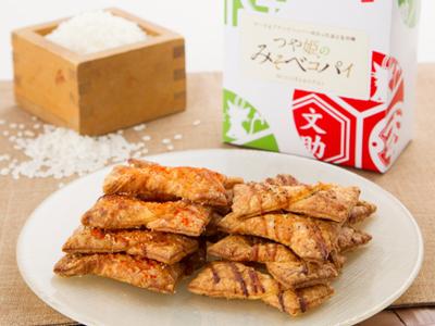 長井がぎゅっとつまったラスク『みそベコラスク』が登場してから、8ヶ月。姉妹品が完成しました!!(*^-^ハ)長井のこだわりがつまったパイ『つや姫のみそベコパイ』と名付けられ5月から堂々販売開始となりました(*゚▽^*)〜チーズとブラックペッパーの入ったおとなの味〜という売り込みなのでどんな味なんだろう?とぱくっとつまんでみました♪左側がブラックペッパー、右側がチーズです。先にブラックペッパーの方を(^O^*)1口目:サクッとしたパイ、2口目:ん?ペッパー?、3口目:後味はチーズ?、4口目:ご馳走様でしたパイなので甘いのかなぁ?と思いきや、ビールに合いそうな味です(〃〃)次にチーズ味、いただきます♪1口目:チーズの香りが強い、2口目:チーズとパイが絶妙〜、3口目:モグモグ、パイだけ食べてみたいな〜、4口目:食べちゃった(*><)チーズがきいてる!(w゚O゚)w以上、食べた感想です♪(伝わりますか…?わかりにくくてゴメンナサイ(^^;サクサクとしたパイには、長井産のつや姫がたっぷりと練り込んであるそう!お菓子をつくった「ブランドォレ」から一言『米沢牛の脂と味噌と味噌だまりを加え、つや姫をたっぷりと混ぜ込みパイに仕上げました。長井がぎゅうっと詰まったパイをお土産はもちろん、ビールのおつまみにもいかがでしょうか?』新・長井のお土産、いかがですか(*゚-゚*)☆みそベコパイのお求めはこちら【ながいファン倶楽部会員募集中!】☆毎月1日・15日にファン倶楽部会員様へメールマガジンを配信♪▼お申込はこちらから!