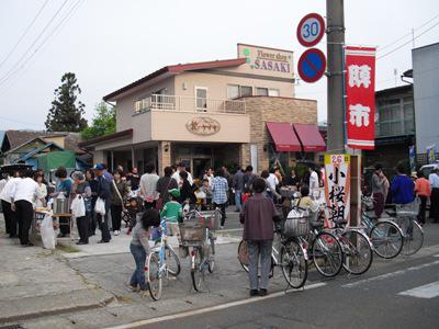 26日(日)に長井市の大町にある花のササキさんの駐車場で『小桜朝市』が開催されました!朝6時からの開始なのですが、6時前から人が集まり・・・6時10分頃には大盛況!5年目を迎えた小桜朝市は、今まで1度も雨が降ったことのない“朝市”なんです(*^−^)b今年初の小桜朝市には長井市内の11業者さんが参加。中でもみそべこラスクやみそべこパイをつくっている「ブランドォレ」さんが初登場!お目当ては“朝巻きロール”▼朝巻きロール♪1本のながーいロールケーキを切り分けて販売!ロールの中にはたっぷりの生クリームといちごが(*^O^)bトマトのシフォンケーキも美味でした(〃〃)その他、たくさんの“朝ごはん&朝スイーツ”が並びました♪・桃華楼本店の朝ラーメン・お菓子パン工房jiemの夏の冷た〜いスイーツ・夢蔵の惣菜&漬物・坂野昆布巻屋の昆布巻き・ジュアンのナポリタン&スイーツ・肉の大場の馬肉サラミ・メンチ&コロッケ・水上屋の朝限定生ロール・須藤米店のつや姫おにぎり・花のササキのお花・大町公民館のつや姫などなど、朝市でしか買えない・食べられない商品も(@@)お味噌汁のお振舞いやご飯の試食もあってその場で『朝ごはん』を食べて帰る方も多くにぎわいました(*^▽')ノ次回の小桜朝市は 6月30日(日) です!朝のお散歩に、朝ごはんに足を運んでみてください♪【ながいファン倶楽部会員募集中!】☆毎月1日・15日にファン倶楽部会員様へメールマガジンを配信♪▼お申込はこちらから!