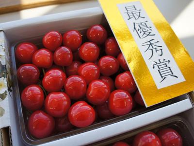 長井のさくらんぼ品評会が昨日(25日)開催されました!!長井さくらんぼ振興会のメンバー20名が今年一番の「さくらんぼ 佐藤錦」を箱に詰め、出品!!▼自慢のサクランボがずらり(〃O〃)品評会ということで、特秀・LLの佐藤錦。真っ赤ですっごく大きい粒ばかり!今年は色づきも・肥大(実の大きさ)も良く、長井でさくらんぼを作り始めて二十数年の中で、今までにないくらい良いさくらんぼの年なんだそう!▼じっくりと1箱1箱チェック!場所や向きを変えたりして、さくらんぼの実のキズがあるかないか、割れてないか実の大きさ、色づき、軸の色などを確認。テカテカ、つやつや、しっかりとした粒ぞろいの逸品ばかり。じっくりと審査された結果...!!▼最優秀賞 アグリメント中 さん(飯豊)▼優秀賞 2名 (左) 高橋 忠 さん(九野本) (右) 石塚 虎雄 さん(成田)▼優良賞 2名 (左) 椎名 市栄 さん(草岡) (右) 横澤 剛 さん(伊佐沢)、糖度賞も!どれもこれも良く、審査員の方々も審査が大変だったとのこと!優良賞を受賞した横澤さんのさくらんぼが28.0で糖度賞を受賞、次点の糖度も27.4と(@@)う〜ん...食べてみたいなぁ(((><)))長井のさくらんぼが味・質ともに、ますますよくなるといいな〜!さくらんぼ農家の皆さん、お忙しいとは思いますが、喜んでもらえるさくらんぼをこれからもよろしくお願いします(*^-^)/【ながいファン倶楽部会員募集中!】☆毎月1日・15日にファン倶楽部会員様へメールマガジンを配信♪▼お申込はこちらから!