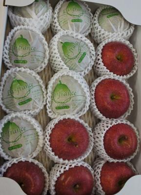 フルーツ王国山形は今、彩の果物真っ盛り!!赤、黄、黄緑、橙、紫etc・・・様々なカラーで、目にも美味しく映ります(*^。^*)そんな中満を持して、冬の果物代表選手のラ・フランスとふじりんごがコラボした贅沢な詰め合わせが登場します♪色の取り合わせは見るからにゴージャス(^O^)/どちらも食べたい方向きのちょっと欲張りなセットです。大切な方に送ったら、蓋を開けた瞬間の喜ぶお顔が想像できるようですよね♪ただ、りんごはエチレンガスを放出するので、届いたら、説明書を読んでくださいね。★ ラ・フランス&ふじりんごセット3kgのお求めはこちらから ★★ ラ・フランス&ふじりんごセット5kgのお求めはこちらから ★【この記事は、ながいファン倶楽部のブログです】☆毎月1日・15日にファン倶楽部会員様へメールマガジンを配信♪▼お申込はこちらから! ※ながいファン倶楽部のブログで使用している写真は、私たちが 一生懸命撮った写真です。勝手にお使いにならないでくださいね♪