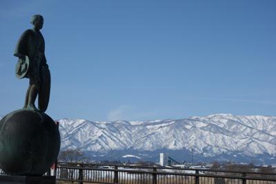天気も良いのでタスから足を延ばしてみました。国道287号線「長井橋」に立ってみると山水画のような西山が・・・。長井橋の両端には、長井市出身の彫刻家長沼孝三氏の作品、「昔」と「今」をモチーフにしたブロンズ像があります。右岸側に、小鵜飼船と日本海航路を彫り込んだ作品の上に立つ道中旅姿の長井商人像。左岸側には、アヤメ、ツツジ、ハギ「水と緑と花のながい 活力とやすらぎのまち」の文字があり、上に少年少女像。静まり返った穏やかな流れに心洗われるよう♪車で通りすぎることが多い場所ですが、機会がありましたら景色を眺めてみてくださいね。【この記事は、ながいファン倶楽部のブログです】☆毎月1日・15日にファン倶楽部会員様へメールマガジンを配信♪▼お申込はこちらから! ※ながいファン倶楽部のブログで使用している写真は、私たちが 一生懸命撮った写真です。勝手にお使いにならないでくださいね♪