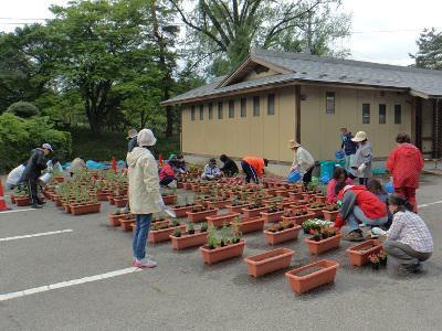 桜に続き、白つつじが咲き乱れる長井市は一番華やかな季節を迎えています。6月に入ると今度は「あやめ」が見頃となります。今はまだ花芽もつかず、閑散としたあやめ公園ですが、「あやめまつり」に向けて、お客様をお迎えする準備が着々と進んでいます。5月7日(土)、あやめ公園の駐車場を彩るプランターの花植えが、市と横町地区、また中央地区女性の会などの有志によるボランティア活動として行なわれました。早朝からの作業でしたが皆さん慣れたもので、手際よく花が植えられました。公園を訪れるお客様に喜んでもらえると嬉しいですね。公園内のあやめの花も、苗木の植えつけなどは市民ボランティアの方々の働きで毎年美しい姿を鑑賞できています。みなさまお疲れ様でした(__)見頃になるのが楽しみです(*^。^*)さて、明日は待ちに待った『ながい黒獅子まつり』。ながいファン倶楽部では今年も インターネットでライブ中継 します♪会場となる松が池公園(白つつじ公園)にもぜひ遊びに来てくださいね!【この記事は、ながいファン倶楽部のブログです】 ☆毎月1日・15日にメールマガジンを配信しています♪ ご希望の方は会員登録をお願いします。 ※ながいファン倶楽部のブログで使用している写真は、私たちが 一生懸命撮った写真です。勝手にお使いにならないでくださいね♪
