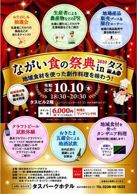 「ながい食の祭典inタス」10/10(木)18:30〜昨年も開催され大盛況だったこのイベントが今年も開催されます。地元で収穫された秋の味覚を存分に楽しんで頂きたいと企画されたこのイベント、昨年はたくさんの方が参加されました。▼昨年の様子 おいしい料理や飲み物が楽しめるのはもちろん、地場産品の販売、抽選会などの楽しめるイベントも♪前売りのチケット制になっていますので、タス、川のみなと長井、菜なポート、でお買い求めください。【この記事は、ながいファン倶楽部のブログです】☆毎月1日・15日にファン倶楽部会員様へメールマガジンを配信♪▼前の記事・お申込はこちらから!