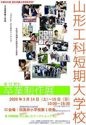 雨水を過ぎ、とうとう冬らしい積雪が無いままの長井市です。世間ではコロナウイルスの話題でもちきりですが、受験生や卒業生たちにとっては、忙しい時季になってきましたね。さて、長井市にたった一つだけある大学校「山形工科短期大学校」22期生の卒業制作展が行われます。〜〜〜 山形工科短期大学校 21期生 卒展 〜〜〜いつ : 2020年3月14日(土) 〜 15日(日) 10:00 〜 16:30どこで : 長井市 旧長井小学校第一校舎伊佐沢の山の上にあるので、「山の学校」と呼ばれて市民に親しまれている工科短大。市内のイベントなどには学生が参加してくれることも多々。▼会場となるのは、国の有形文化財に指定されている『旧長井小学校第一校舎』。建築物そのものも、見ごたえある歴史的建造物です。 「木に親しむワークショップ」も参加無料で同時開催しています。ものづくりの技術を身に付けた卒業生たちがどんな作品を展示してくれるのか楽しみです。ぜひ足を運んでみて下さいね。【この記事は、ながいファン倶楽部のブログです】☆毎月1日・15日にファン倶楽部会員様へメールマガジンを配信♪▼前の記事・お申込はこちらから!