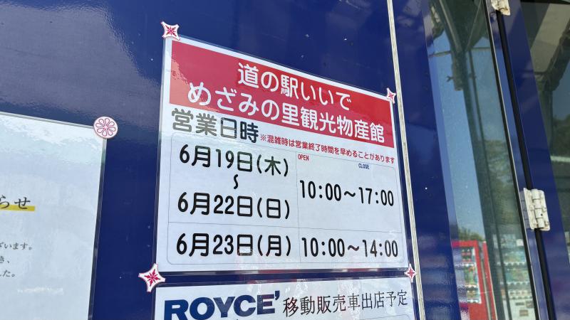 移動販売!2025年6月19日(木)〜22日(日)10:00〜17:00より6月23日(月)10:00〜14:00、道の駅いいで、めざみの里観光物産館にて販売いただきます!ぜひこの機会をお見逃しなく!!