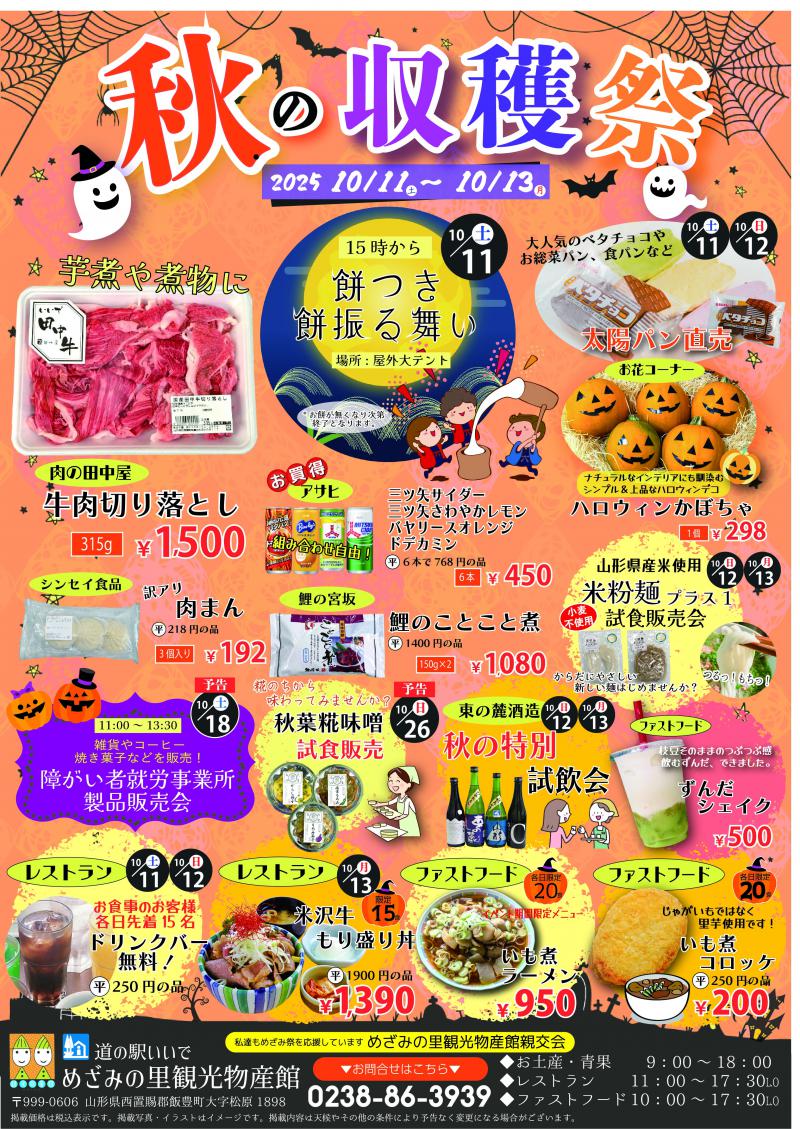 10/11〜10/13の3日間、秋の収穫祭を行います!詳しくは添付のチラシをご覧くださいませ!皆様のご来館をお待ちしております!!
